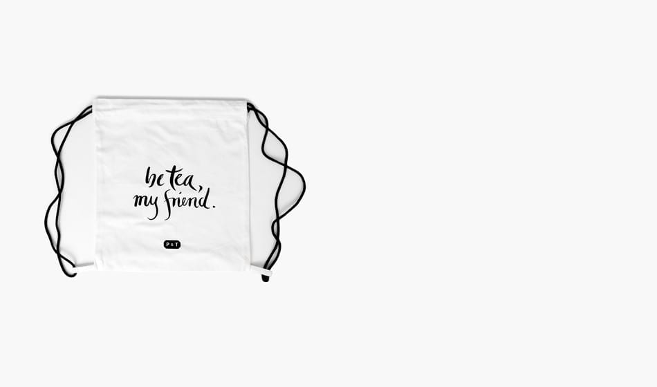 The drawstring cotton backpack fashions a popular look from Berlin’s oh-so-cool streets. Equipped with a kung-fu inspired message in a friendly font to tackle these hectic times with a touch of zen and a quip of humor. Join us in drinking tea, filling up with good (tea) karma, and sharing it with the world.