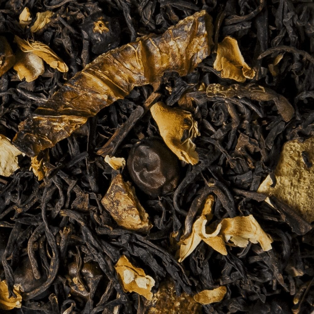 Indian black tea* (56%), Chinese green tea * (30%), juniper berries*, tea flowers*, natural bergamot aroma bergamot bits*, jasmine**certified organic