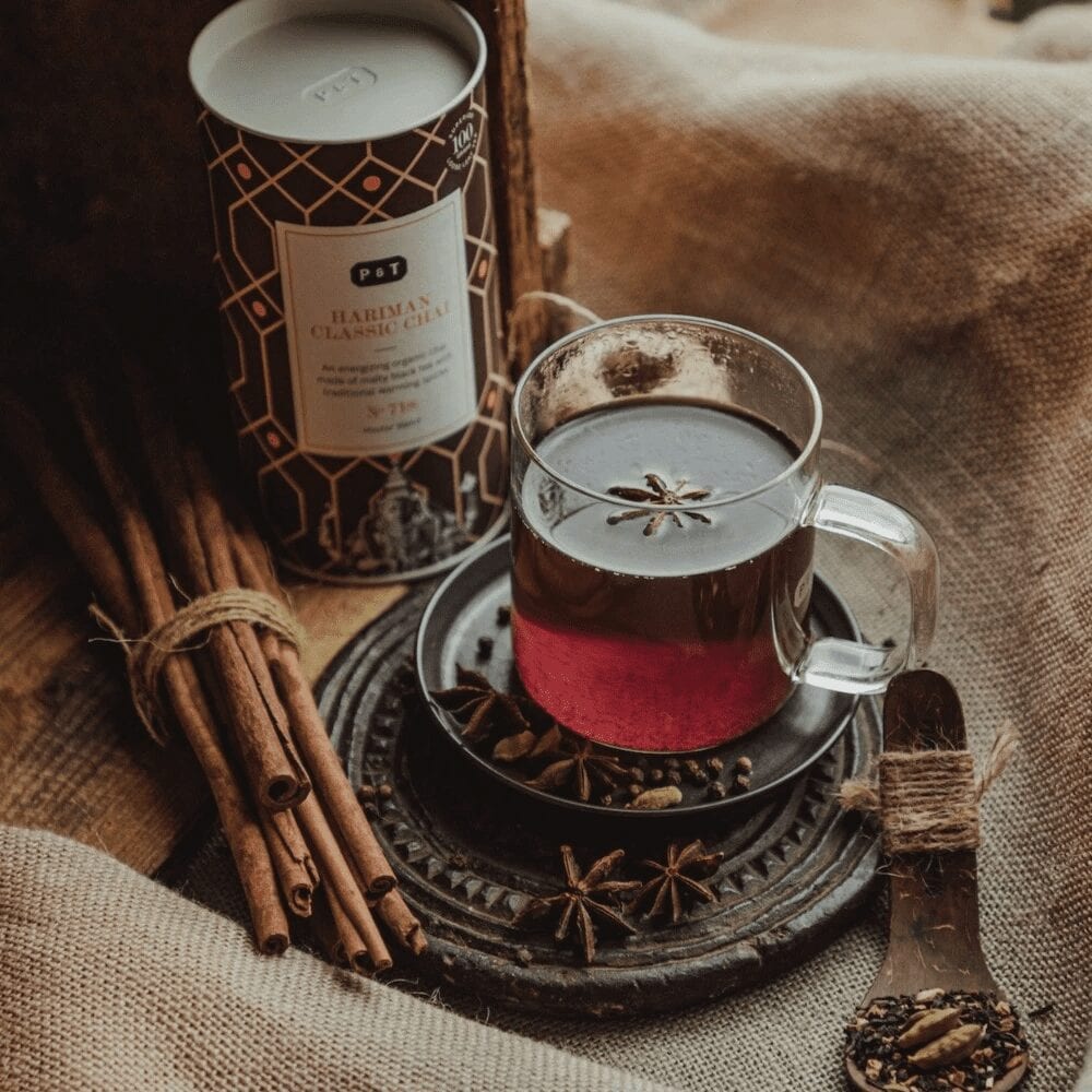 An energizing organic chai made of malty black tea with traditional warming spices