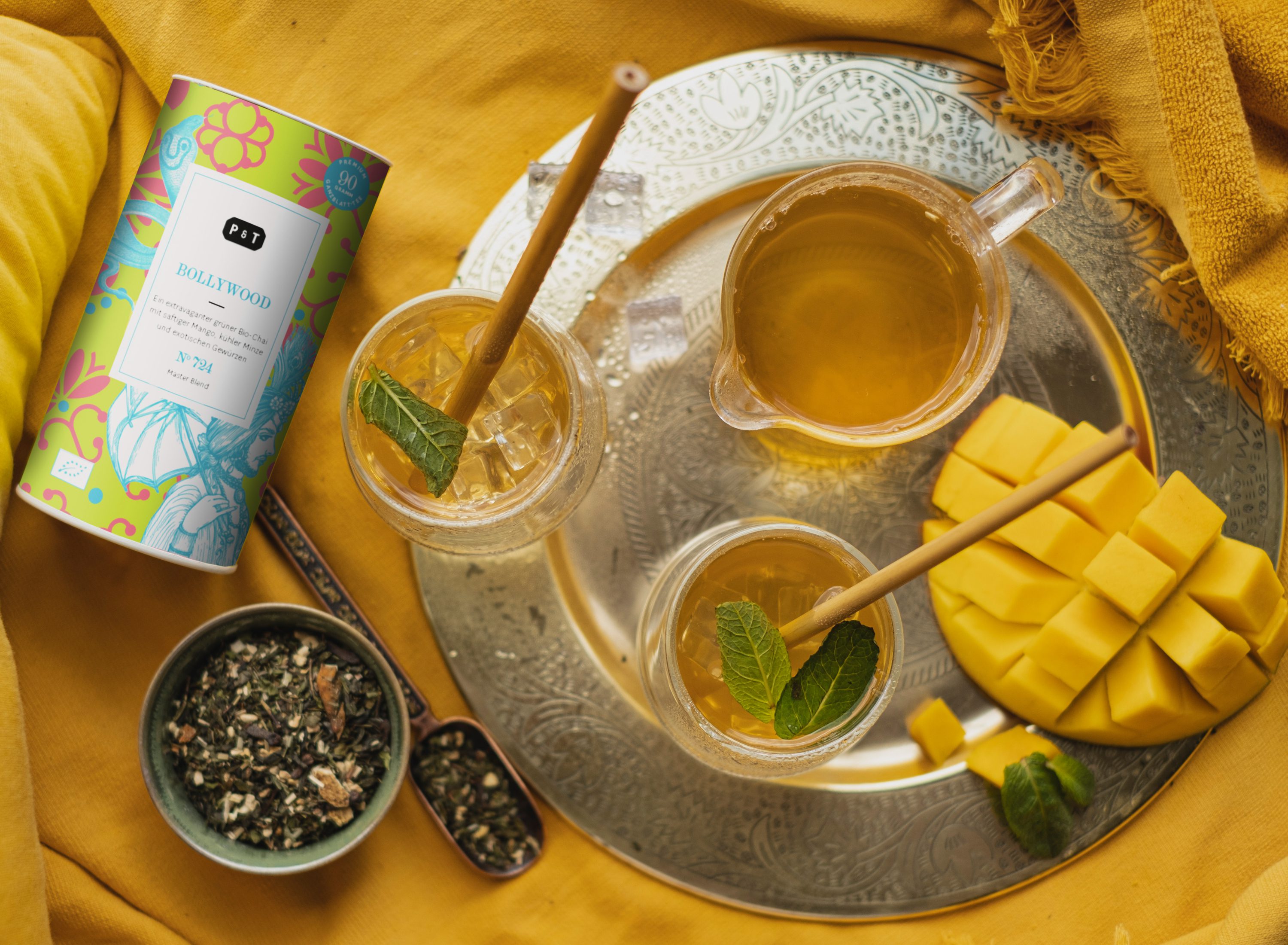 A fanciful blend of organic green tea enriched with tropical mango, cool spearmint, warm ginger and Indian spices, this is our loving ode to the extravagant sets of Bollywood. A firework of flavours, this refreshing chai is a delight to be enjoyed hot or cold.