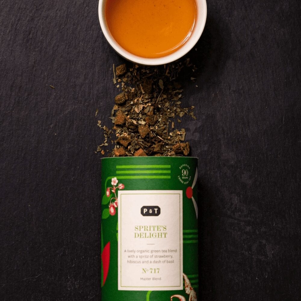 A lush and lively green tea medley of strawberry and blueberry fruit, tangy elderberry flower, paired with a pinch of fragrant basil and earthy beetroot, for a playful, exuberant cup that has pixies and elves alike frolicking with delight.