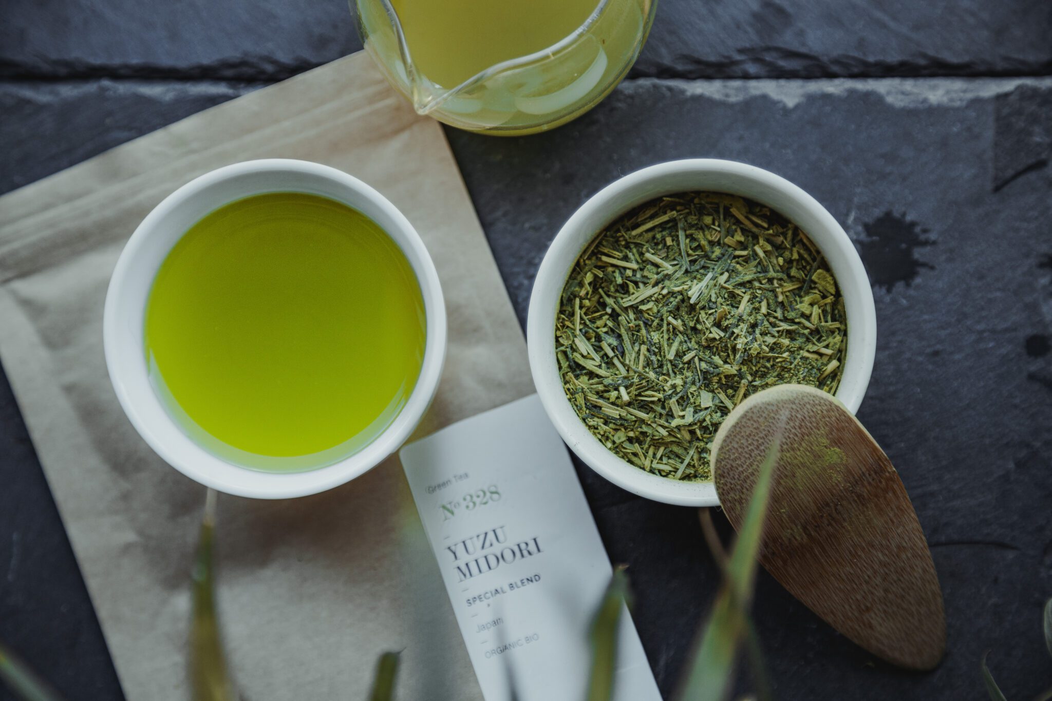 An organic Japanese green tea blend with Kukicha, Matcha and yuzu citrus