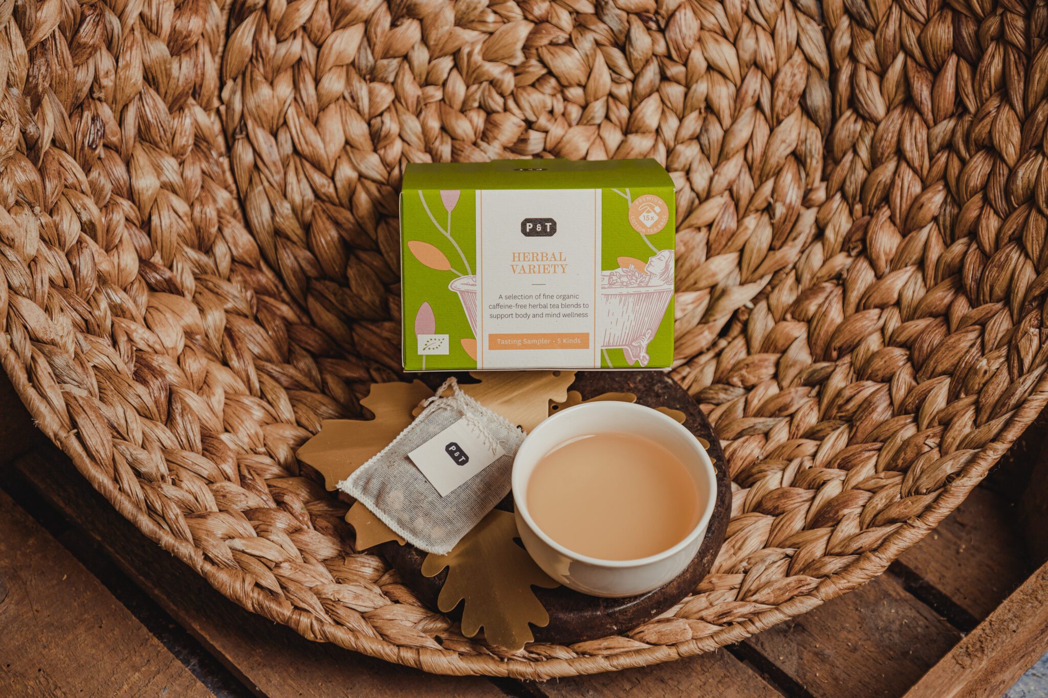 A selection of five fine caffeine free herbal tea blends supporting body, mind and wellness