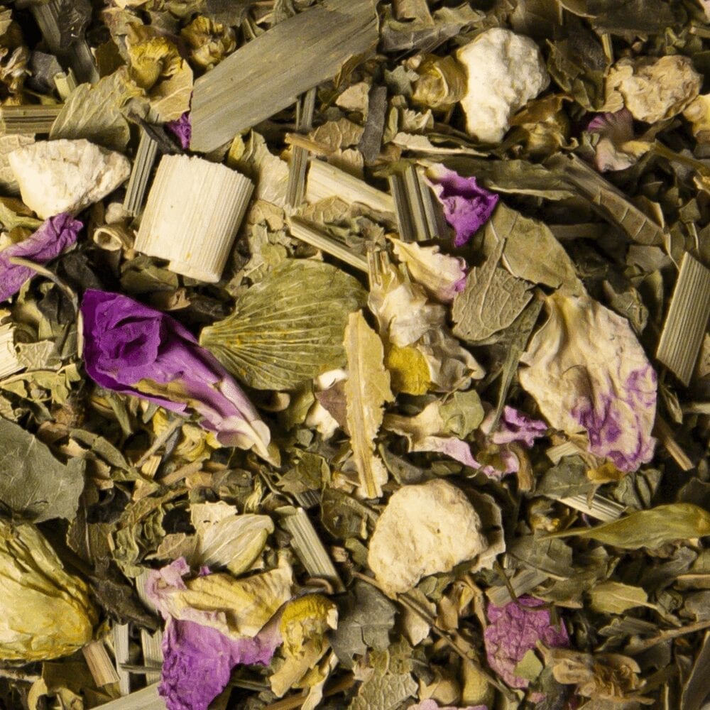 lemon verbena*, lime-tree blossoms*, lemon grass*, stinging nettle leaves*, chamomile flowers*, orange peels*, lemon peels*, rose petals*, hops*, natural aroma *certified organic