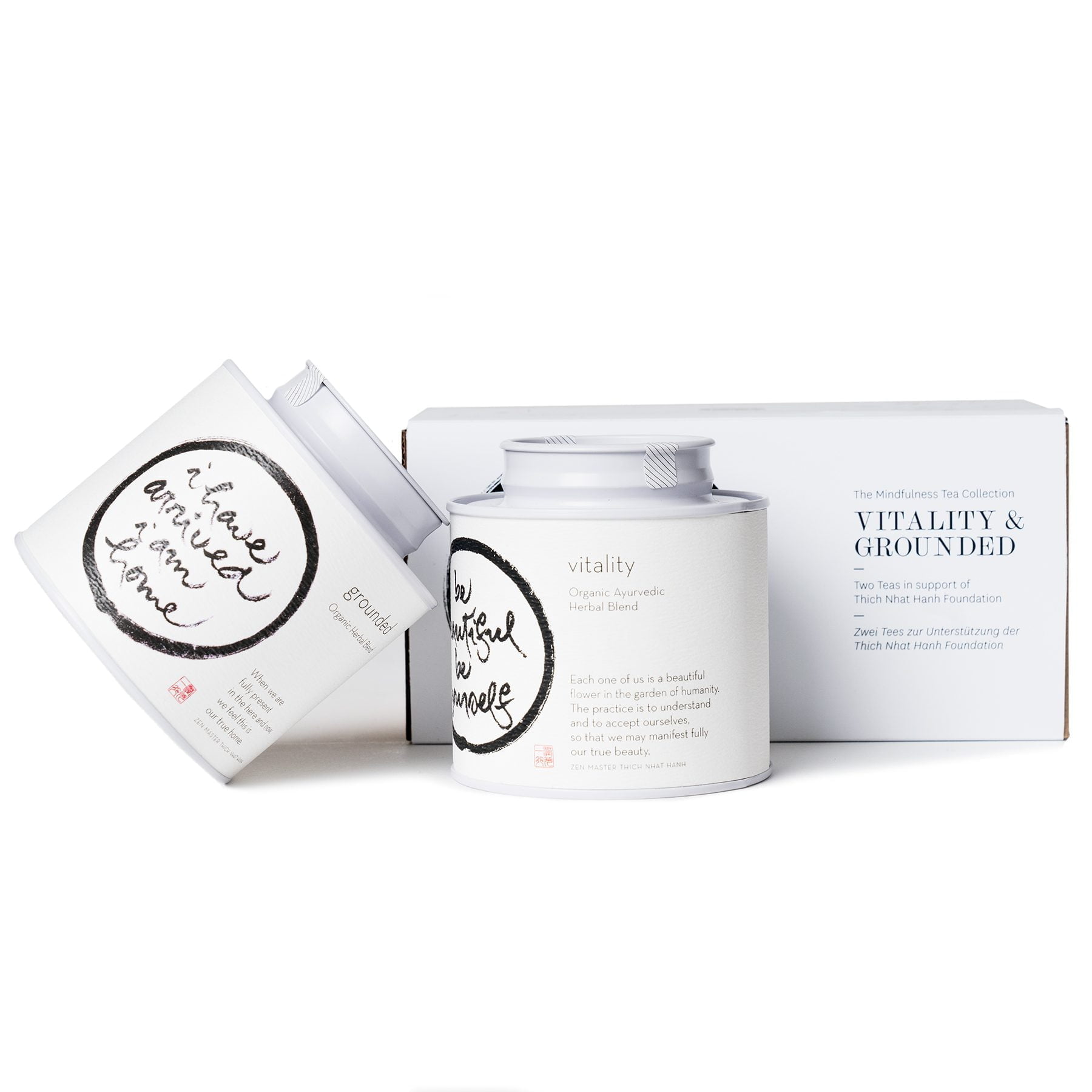 As part of an ongoing collaboration with global and spiritual leader Thich Nhat Hanh, the Mindfulness Duo presents two caffeine-free herbal teas inspired by the ancient Indian tradition Ayurveda. Find a stimulating zesty blend and another of warming spices, wrapped in a P & T gift box. This gift seeks to awaken our senses to the pure, present moment with every sip of tea. The Mindfulness Collection is a part of the Thich Nhat Hanh collection. Here 5% of the profit is donated to the Thich Nhat Hanh Foundation.